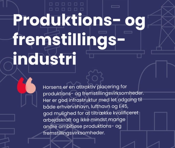 På vores hjemmeside erhverv.horsens.dk kan du læse meget mere om, hvad vi kan tilbyde din virksomhed, hvis du flytter til Horsens.